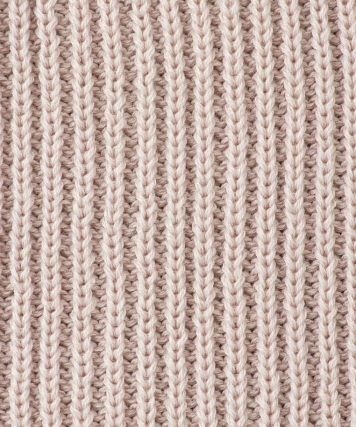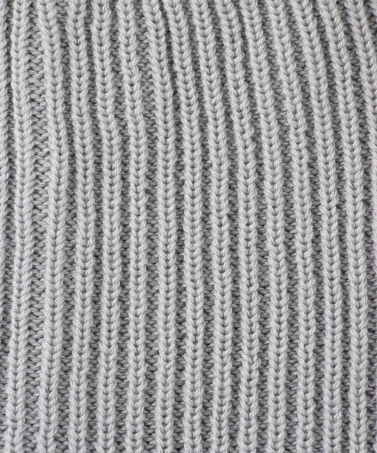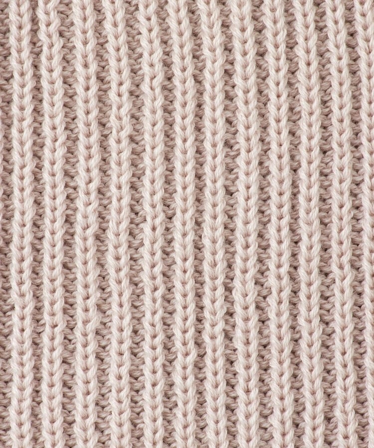 伸縮性のある縦目のリブ編み素材。