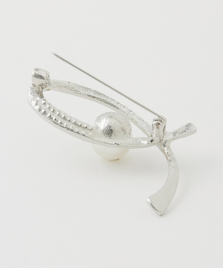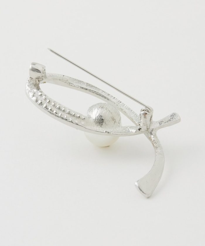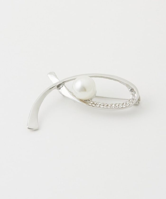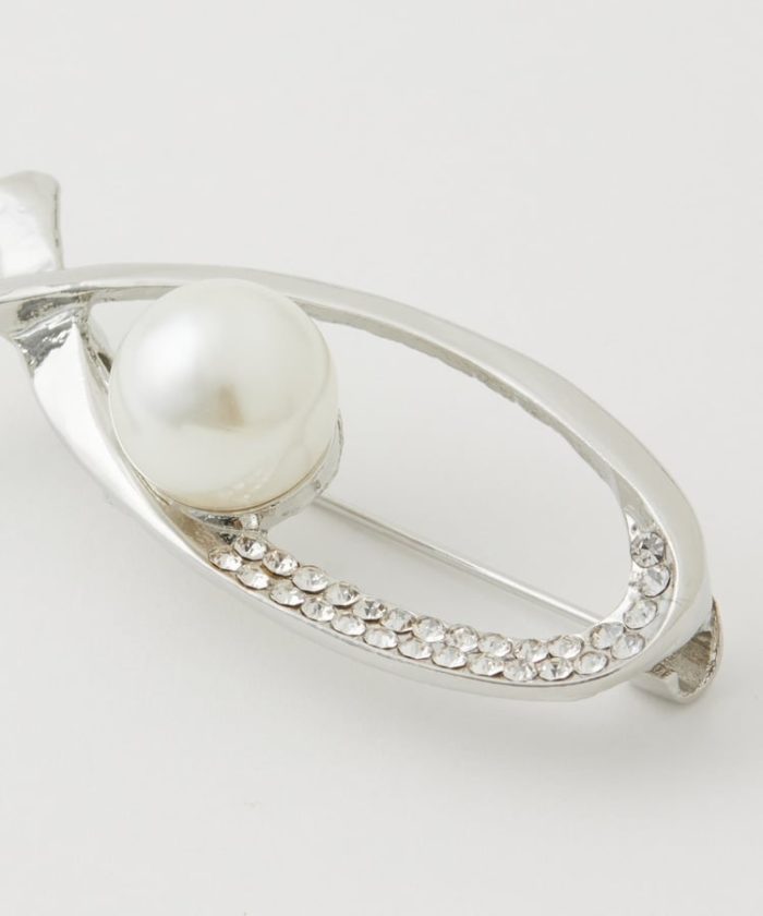 ビジュー付きのくるんとした緩やかなラインに大粒のフェイクパールがアクセント。