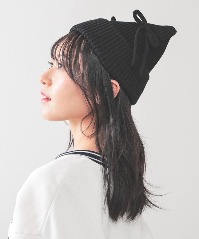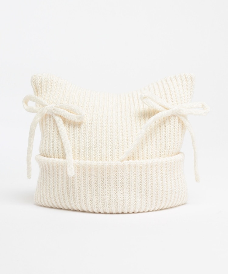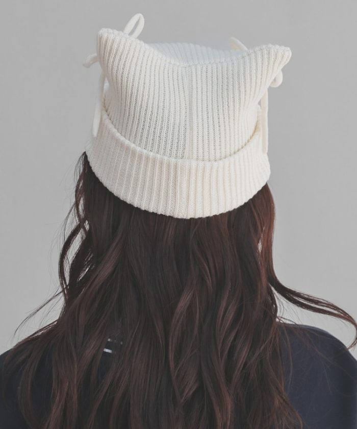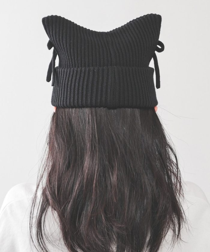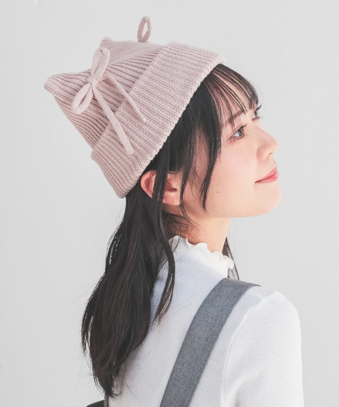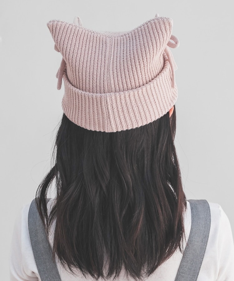 Home ファッショングッズ 帽子 リボン付ネコ耳ニット帽