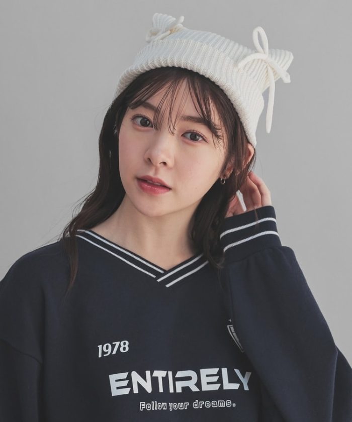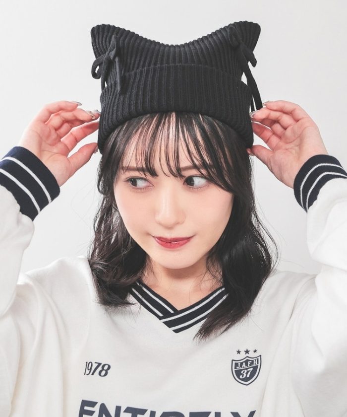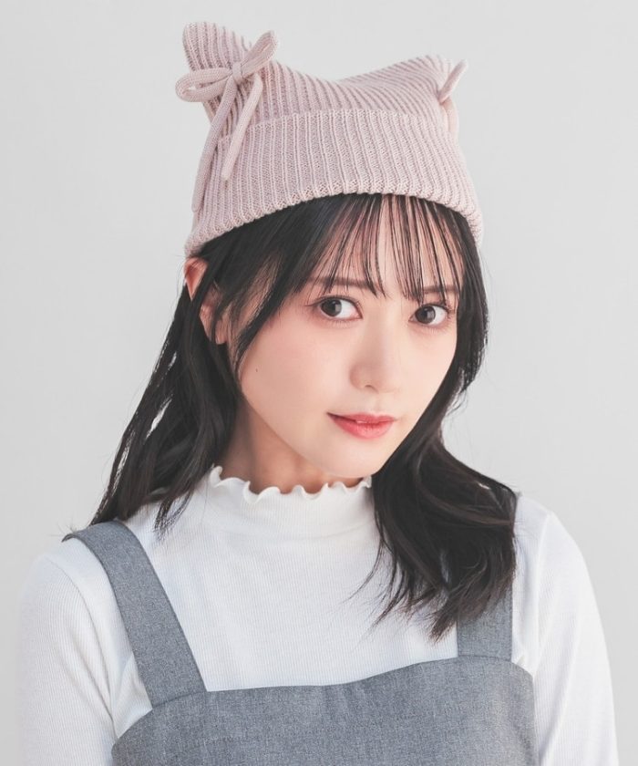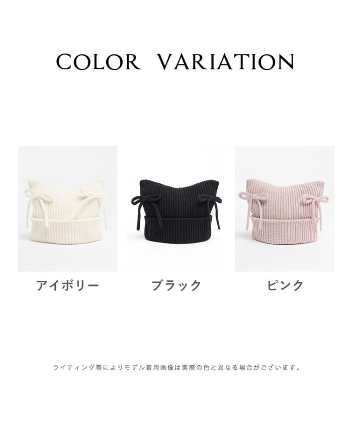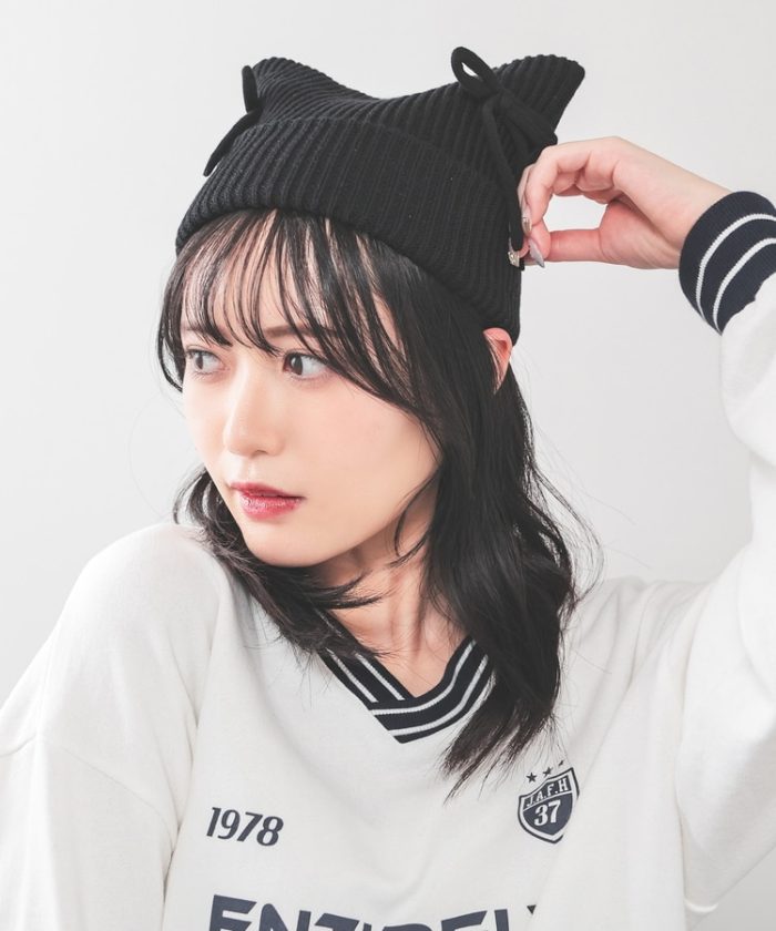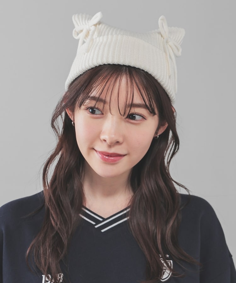 Home ファッショングッズ 帽子 リボン付ネコ耳ニット帽