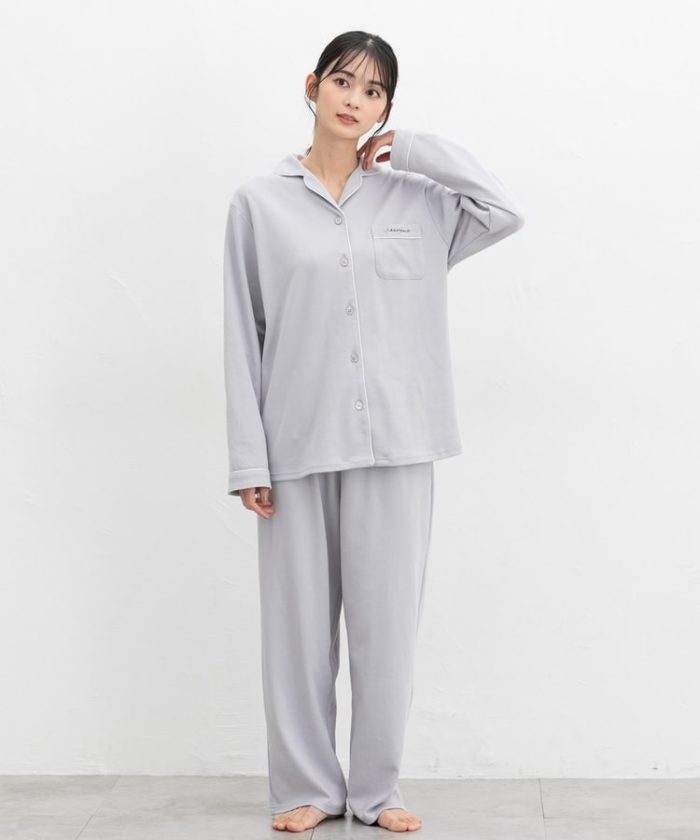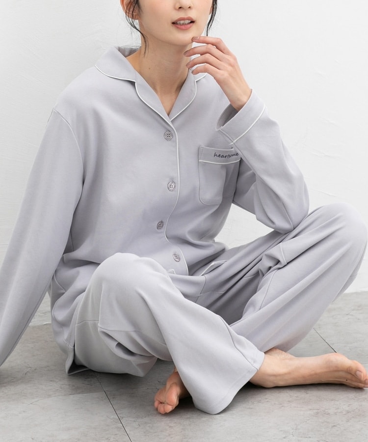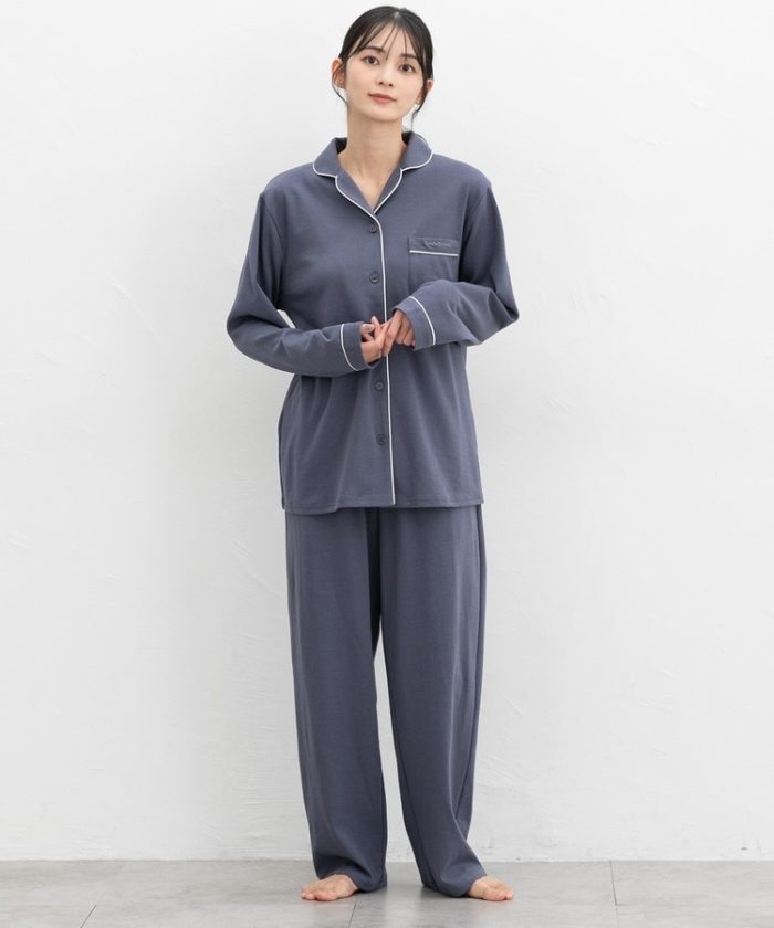 前開き綿素材ルームウェア(上下セット)
